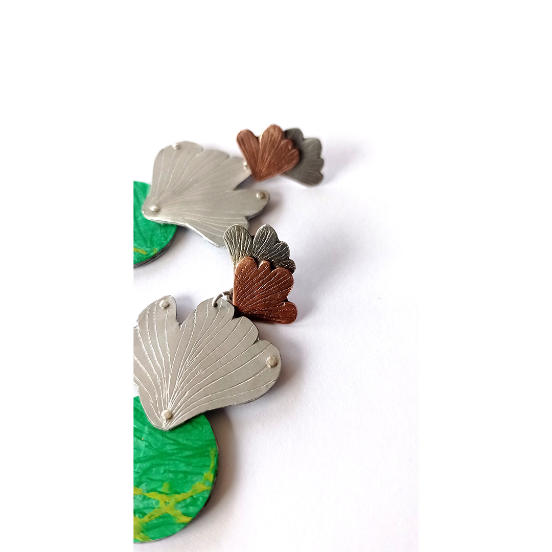 Estos aros son muy versátiles, livianos y cómodos. Se pueden usar de dos formas distintas. Están hechos con metales, tales como, plata 950 y cobre. Además, se han reutilizado latas de aluminio y bolsas plásticas. Tienen un largo aproximado de 6 cm.